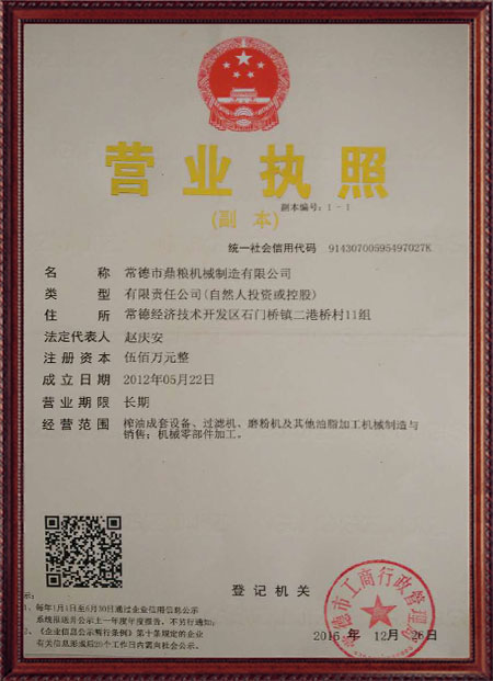 企業(yè)堅(jiān)持“質(zhì)量、口碑就是我們的生命”的原則,嚴(yán)格執(zhí)行質(zhì)量標(biāo)準(zhǔn)檢驗(yàn)體系。生產(chǎn)的"鼎糧"牌系列產(chǎn)品,產(chǎn)品質(zhì)量優(yōu),性價比高,深受廣大新老客戶的青睞,通過了各級部門的鑒定認(rèn)可,立式、臥式液壓榨油機(jī)均榮獲農(nóng)機(jī)推廣證。